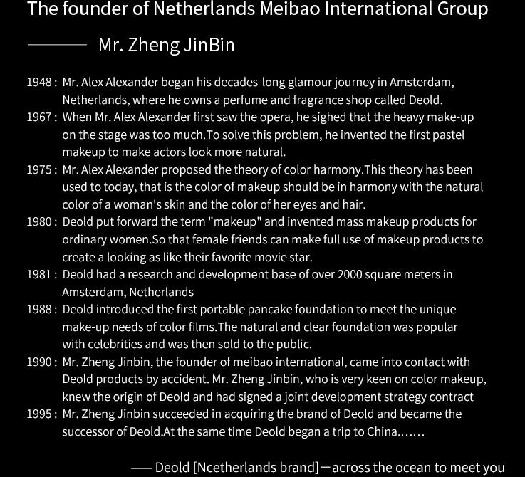 Deold, originated from Netherlands. What kind of skin andmakeup do you long for? What kind of life do you live?Look straight at your skin, and through multi-layeredconversations, we'll find the energy and beauty within you.Through the "beauty secret", we will find out the beautythat belongs only to you. Deold, to improve inside andshape outside, with plant care, gives you top level's beautyexperience.The brand-new plant cares brand makes you abit more beautiful for every day.